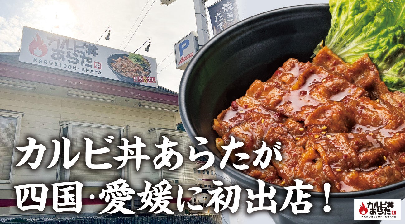 ワンズトライン株式会社(本社:大阪市北区芝田2丁目3番16号、代表取締役:山内仁)が運営する、ボリュームあふれる多くのメニューが自慢の「カルビ丼あらた」が、2023年1月23日(月)愛媛県松山市にオープンいたします。