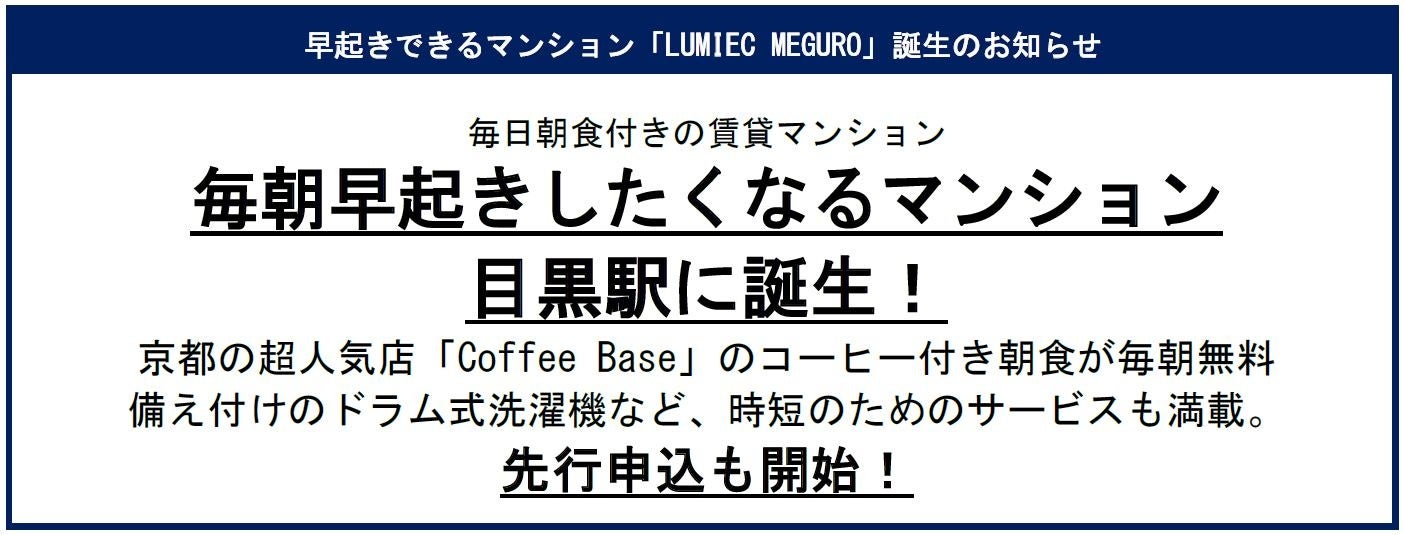 コロンビア・ワークス株式会社(本社:東京都渋谷区渋谷 代表取締役:中内準)は、日本初の「早起きしたくなる マンション」LUMIEC MEGURO(ルミーク目黒)を2023年3月にOPENいたします。
