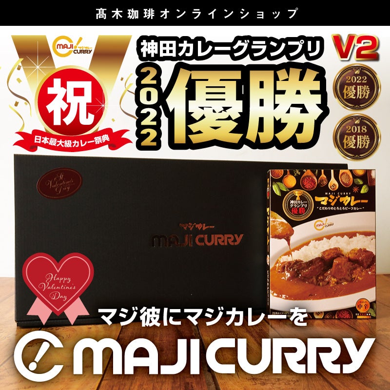 『私の日常をちょぴりスペシャルに』をコンセプトに各店地域に根付く憩いの場となっている髙木珈琲が、お得なMAJICURRYバレンタインセットをオンラインショップで販売中です。着日指定での配送も可能です。