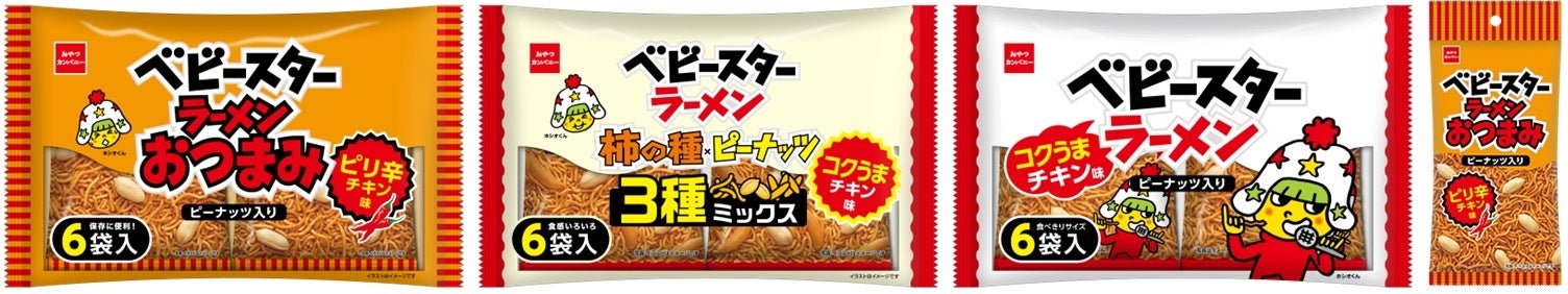 <ベビースターラーメンおつまみシリーズ>※画像左から