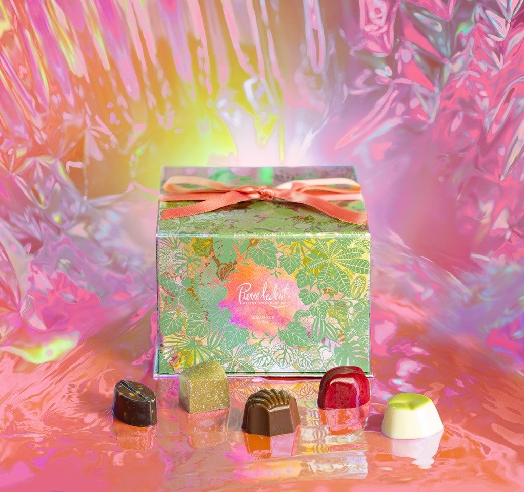 心ときめく5種類のショコラがアソートされたサンク・エトワールにピエール・ルドン定番のハートのショコラをプラスした2段ボックス。多彩な輝きを放つ贅沢な一箱。