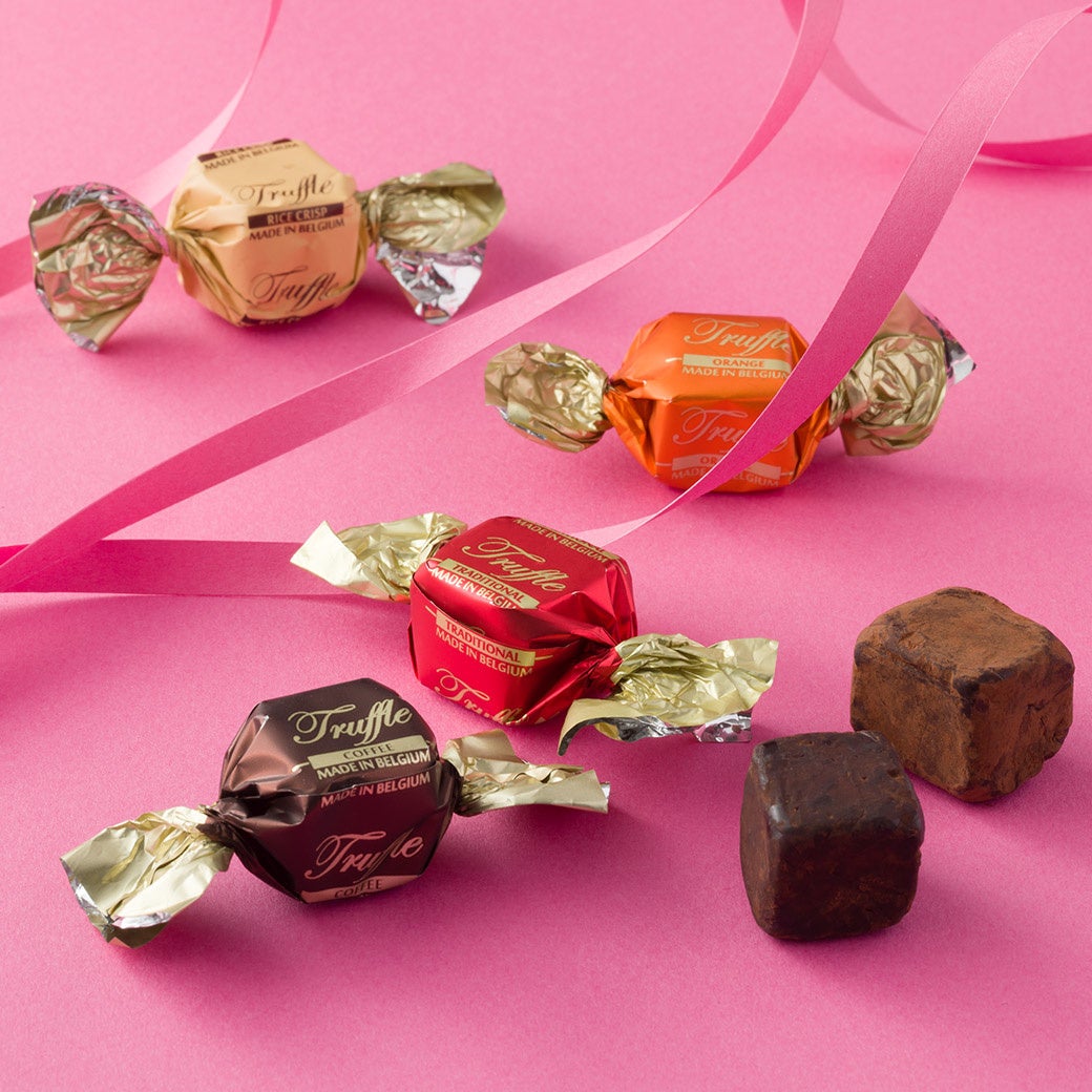 ベルギー伝統のトリュフチョコレート「トラディショナル」、塩キャラメルのすっきりとした甘さの「ソルト・キャラメル」など、なめらかな口どけのトリュフを詰め合わせた贅沢な一箱。