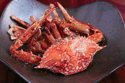 海老料理はブラックタイガーや赤海老、蟹料理は中華料理で有名な上海蟹、ズワイ蟹、紅ズワイ蟹、渡り蟹、ソフトシェルクラブなどを使った、料理長自慢の料理が登場。
