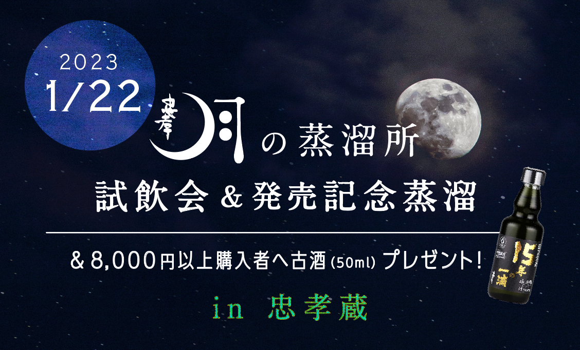 発売記念として、旧正月(&2023年初の新月)である1/22(日)に「くぅーすの杜 忠孝蔵」にて「月の蒸溜所」の特別試飲会&記念蒸溜を行います。
