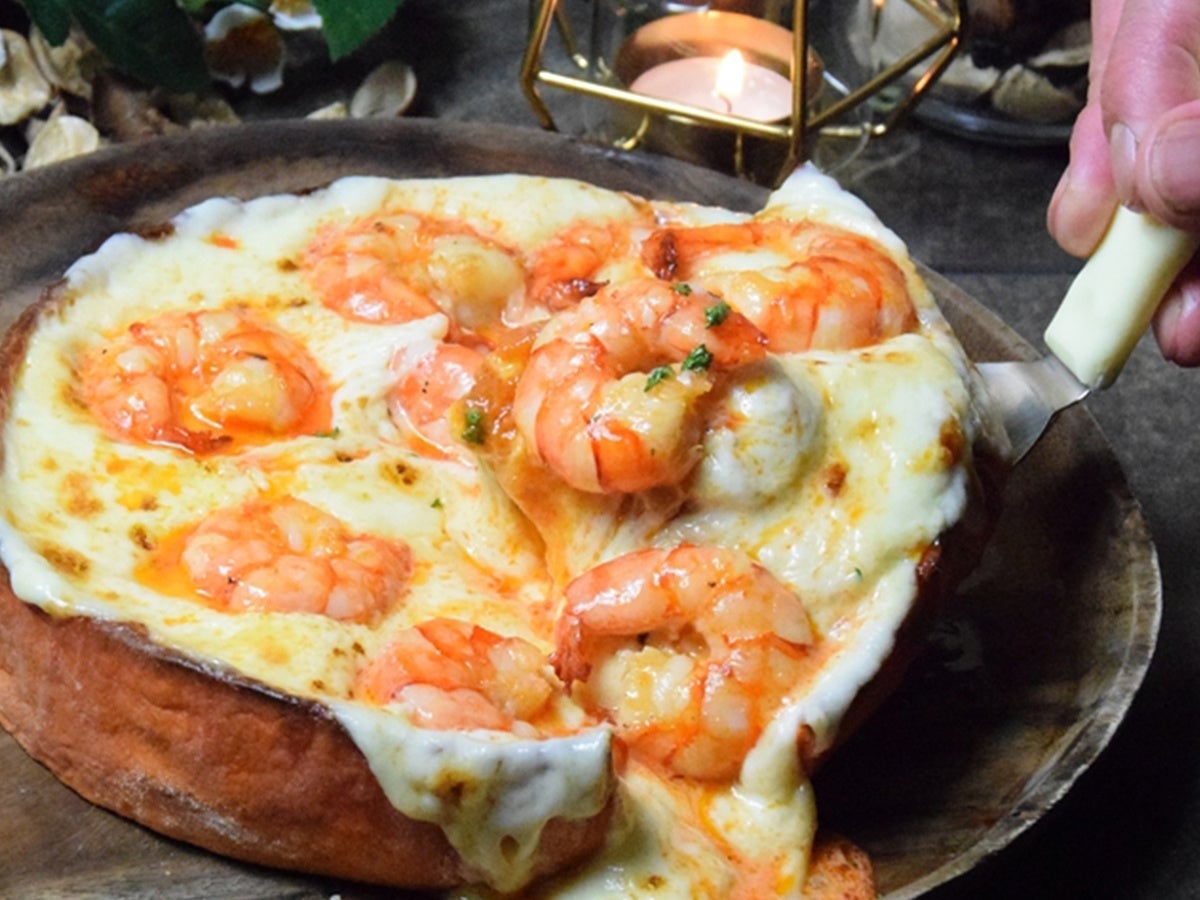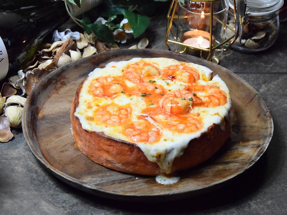 | 大量のチーズにエビを載せたシカゴピザを食べられるお店。 プリプリなエビと濃厚チーズ、中に隠れているアメリケーヌソースの相性が抜群で超ボリューミー! 中にも刻んだエビが隠れているので、エビ好きにはたまらない逸品です! |