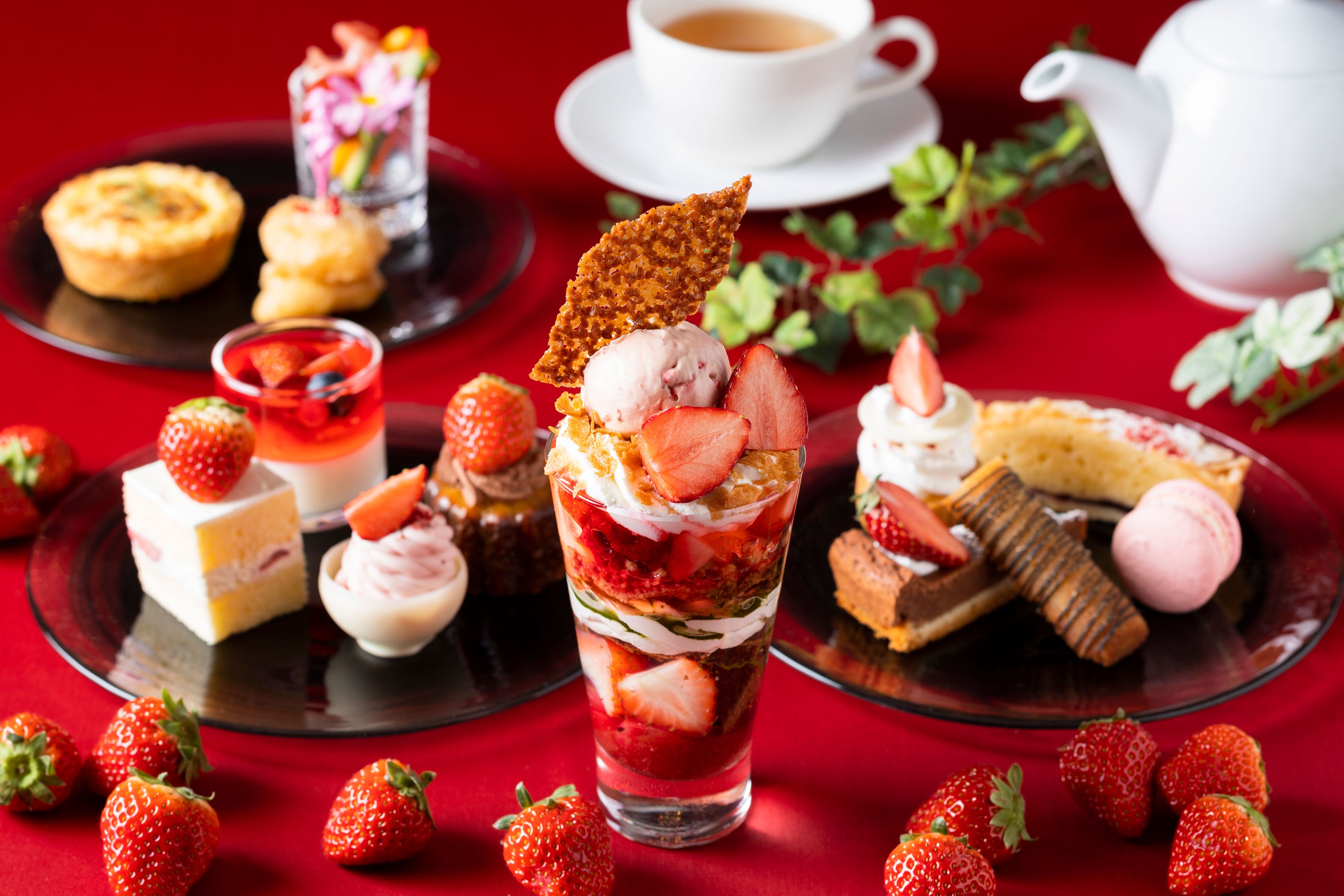 あまおうをふんだんに使用した「あまおうパフェ」やチョコレートの器ごといただける「あまおうモンブラン」などパティシエが丁寧に仕上げたスイーツが勢揃い。セイボリーにはひき肉をマッシュポテトで覆ったフランスの家庭料理「アッシパルマンティエ」などシェフのこだわり料理が味わえます。