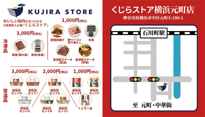 共同船舶株式会社(東京都中央区 代表:所 英樹)は、2023年1月24日(火)12時30分より横浜市中区元町に、くじら肉24時間無人販売店「くじらストア 横浜元町店」をグランドオープンします。