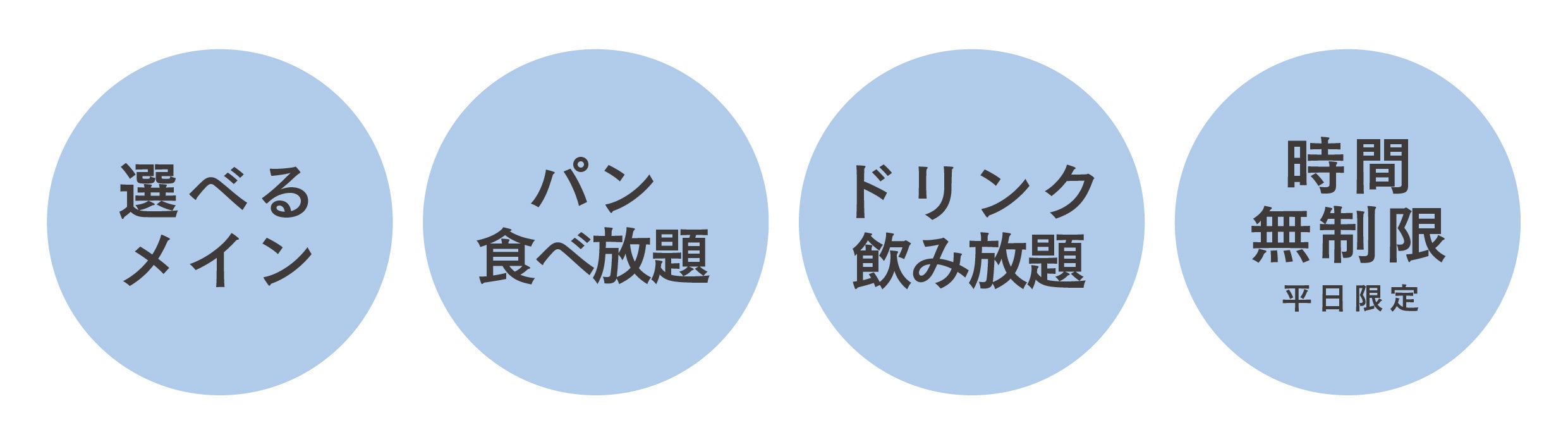 老舗パティスリーから届く全20種類以上の総菜パン食べ放題とオリジナルハーブティー等7種類のドリンク飲み放題がすべてのメニューに付いています。