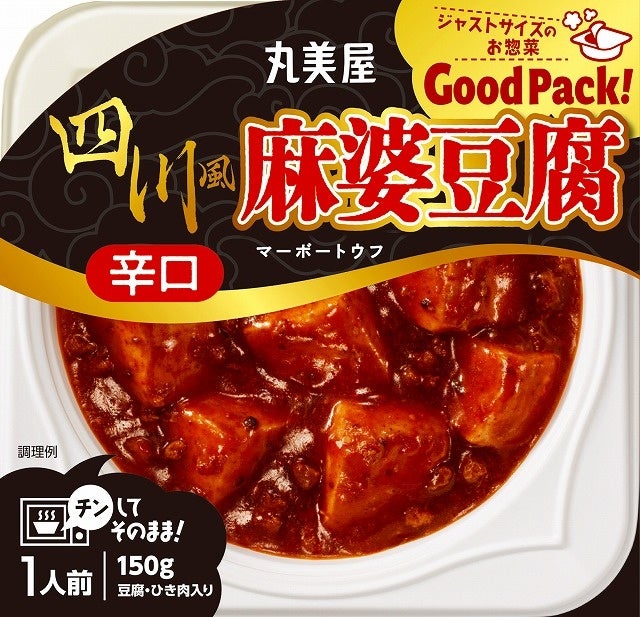 丸美屋食品工業株式会社(本社:東京都杉並区、社長:阿部豊太郎)は、ジャストサイズのお惣菜として、「GoodPack!麻婆豆腐<中辛>」、「GoodPack!四川風麻婆豆腐<辛口>」を2023年2月24日(金)から新発売いたします。