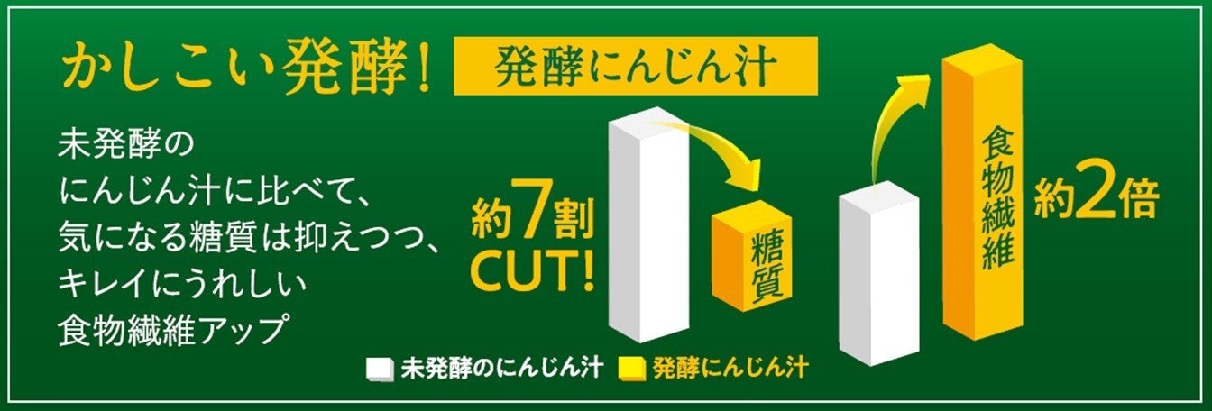 低糖質化の手段として発酵に着目し、2019年から約3年間かけて開発しました。発酵することで、β-カロテンなどの人参の特徴的な栄養はそのままに、糖質をオフ、さらには食物繊維量もアップしているのが“発酵にんじん汁”の大きな特長です。人参原料の探索・選定から、実際の製造工程への落とし込みまで試行錯誤を重ねながら、私たちの求める品質、特においしさにこだわって開発しました。この“発酵にんじん汁”を使用したカゴメ商品は、本商品が初めてとなります。