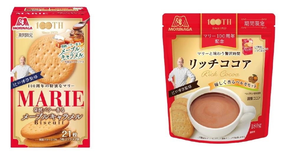 森永製菓株式会社(東京都港区芝、代表取締役社長・太田 栄二郎)は、1923年より発売の「マリー」が100周年を迎えることを記念し、「マリー<発酵バター香るメープルキャラメル>」「リッチココア<マリーと味わう贅沢時間」の2品を辻口シェフ監修のもと、2023年1月31日(火)より新発売いたします。