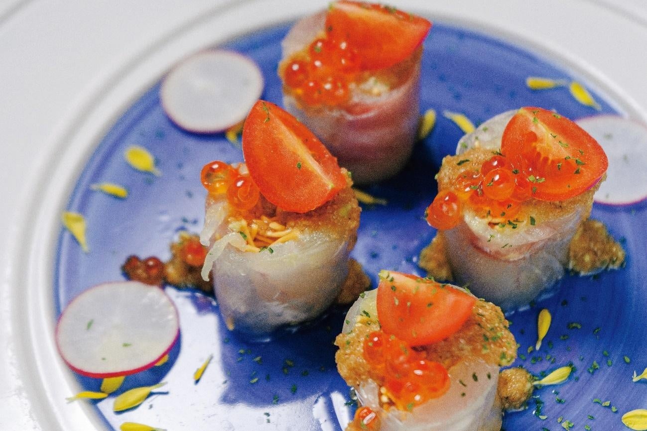 ▲大名 魚喜の「マル鯛 生春巻き~わさびドレッシング~」980円(税込)