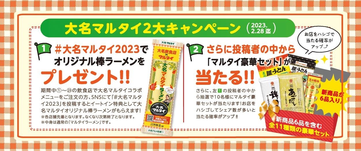 - 大名マルタイ2大キャンペーンを実施