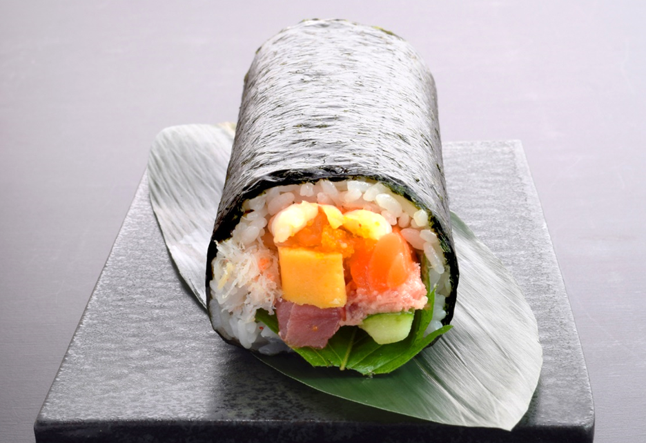 七種の具材が入った豪華な太巻きです。この一本があれば、満足すること間違えなし。