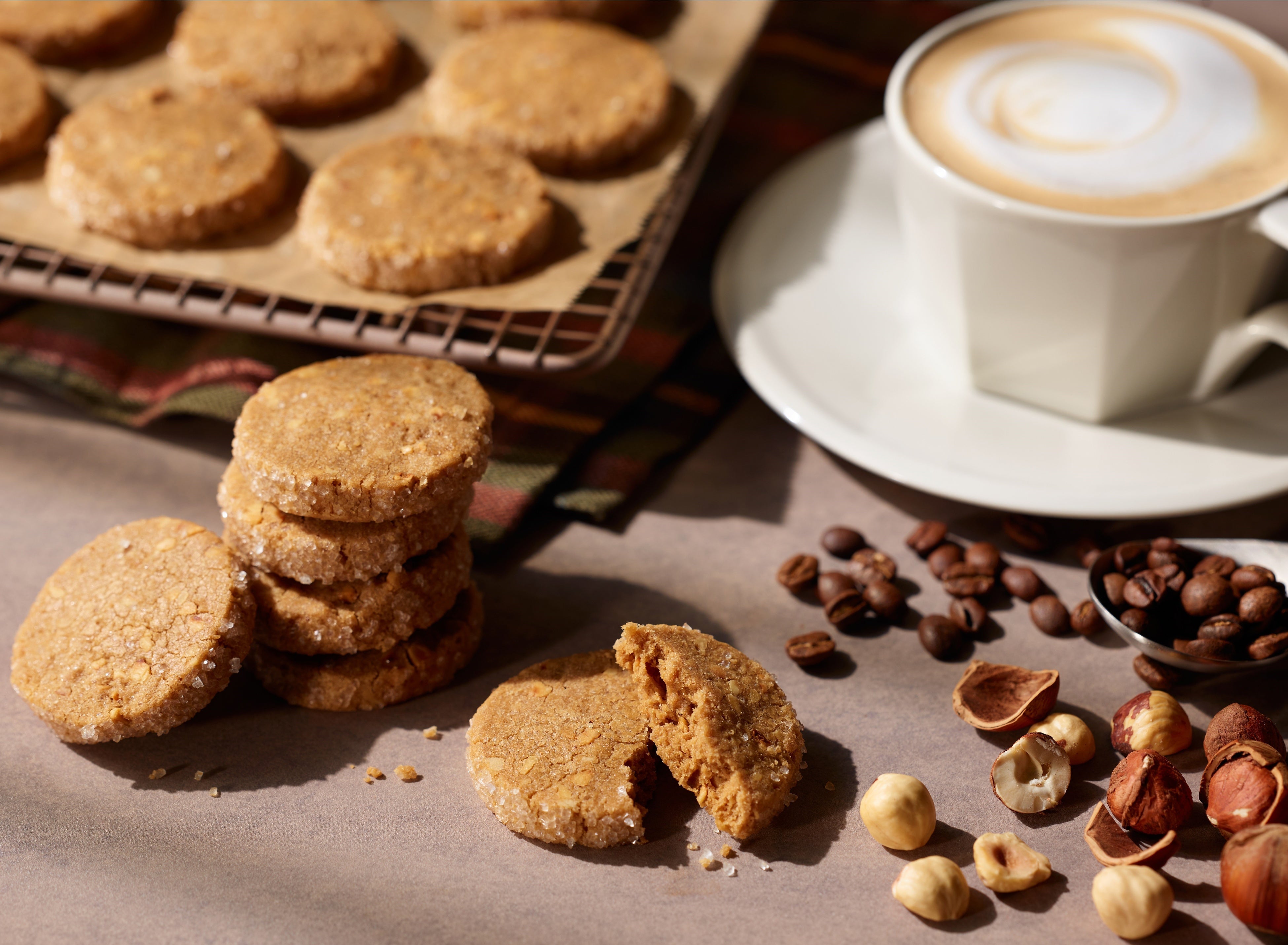 ヘーゼルナッツの香ばしさがアクセントになった、カフェラテ風味のクッキーです。