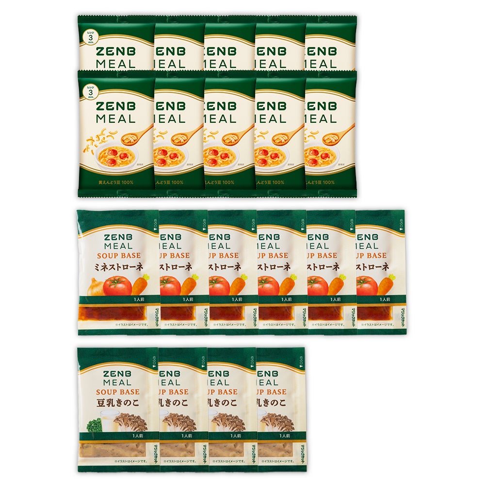 ZENBミール20袋、ミネストローネ10袋、豆乳きのこ10袋