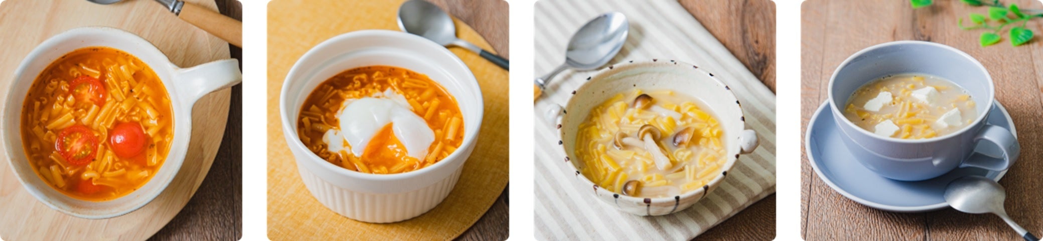 おいしく、栄養たっぷりな黄えんどう豆をもっといろいろなシーンで楽しんでもらいたいという想いから、毎日のスタートである朝食にぴったりな「ZENBミール」を2022年8月に発売。おいしく食物繊維やビタミンB1・鉄分がとれるヘルシーさや、レンジで3分加熱するだけの手軽さから、ZENBのラインナップの中でも特に好評いただいています。そしてこの度、「食べ応えがあるのにヘルシーで、忙しい朝にもぴったり」とお客様から人気のメニュー「スープミール」を、もっと簡単につくれる専用スープベース2品を発売します。野菜やきのこのおいしさを活かした、満足感のあるスープミールをぜひお楽しみください。