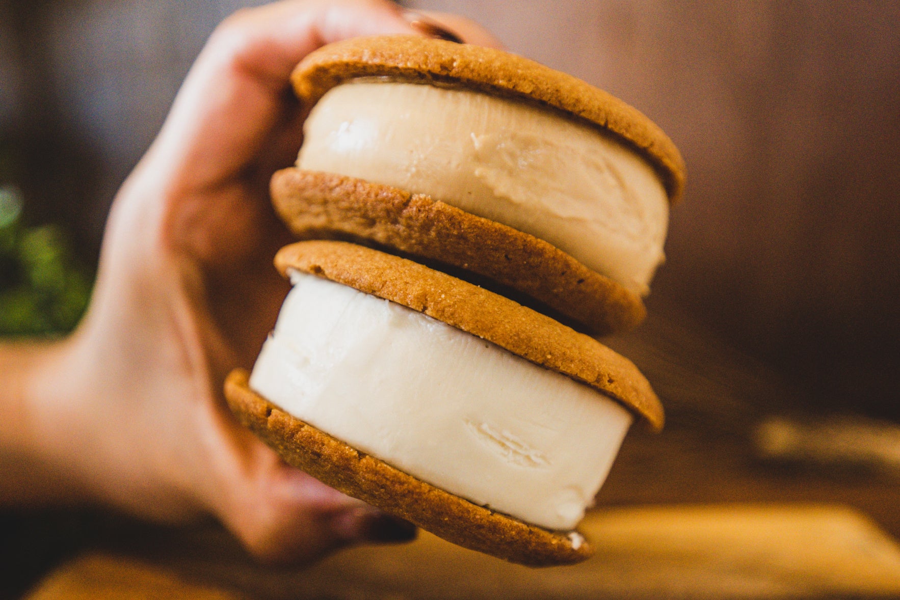 ・レアチーズケーキサンド(プレーンビター/キャラメル)各480円