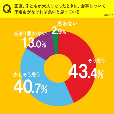 一方で、47.9% の親が「好き嫌いがあることは生活する上で影響があると思わない」と回答し、幼少期の経験があっても好き嫌いに対して生活する上で影響があると思わないことがわかりました。