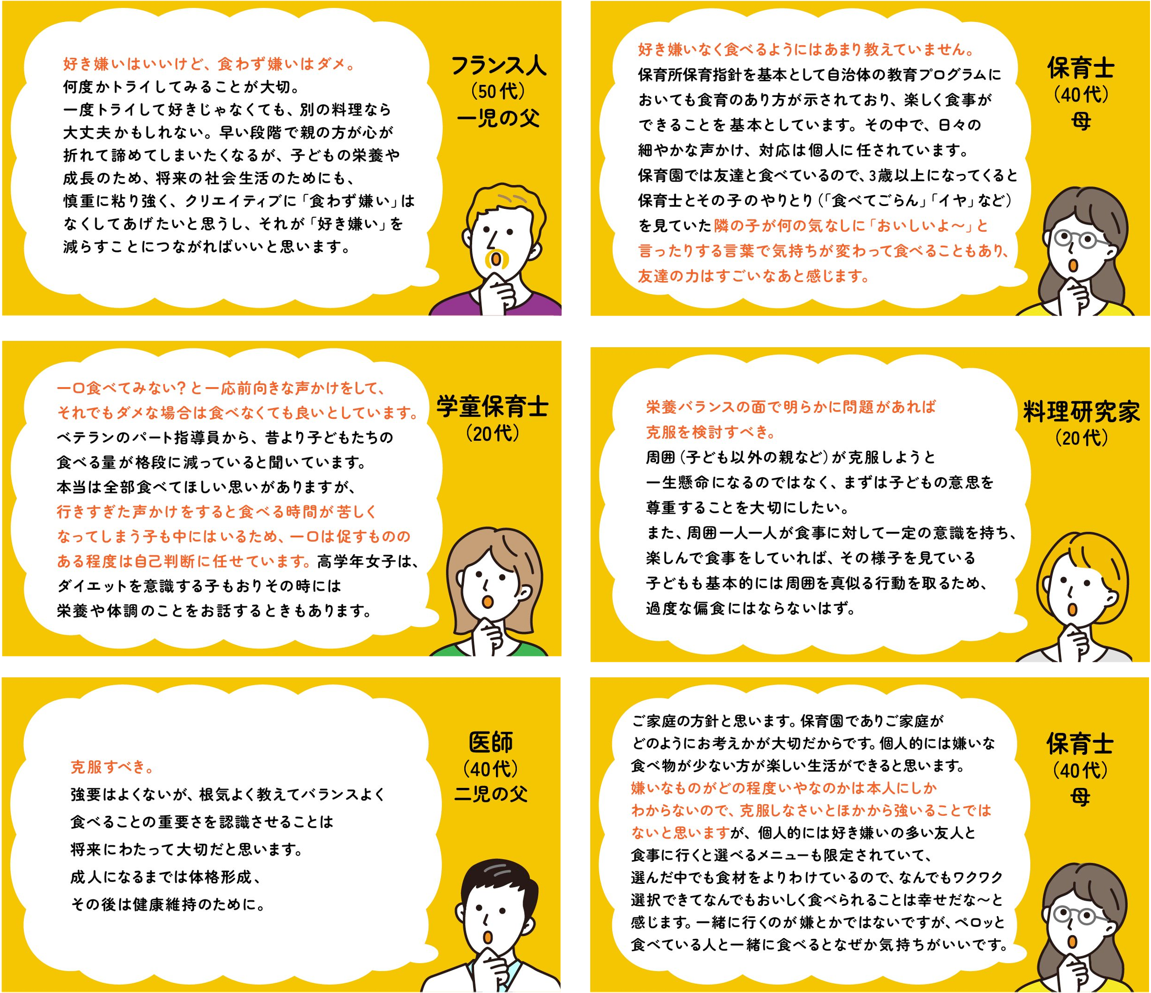 - TOPIC④:子どもの好き嫌いを克服すべき?親が想う、子ども×食育の未来・期待 6割以上が 、子どもに好き嫌いは「個性の一つだと思う」、「もっと許容される風潮になってほしい」