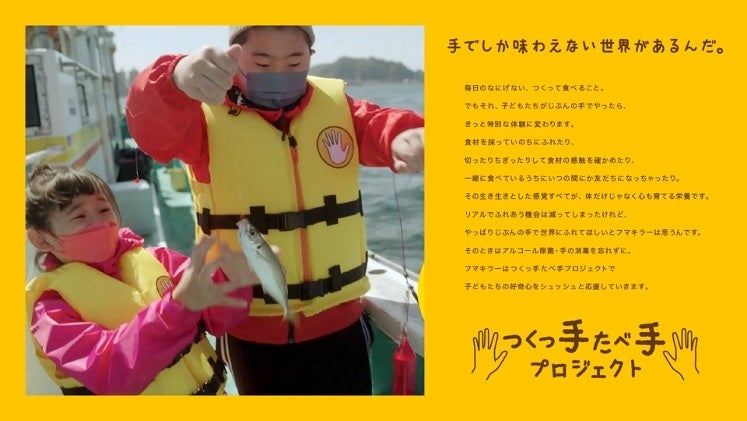アルコール除菌剤や手指用消毒剤などの対策用品を活用して、子供たちにリアルな食育体験を取り戻してもらうべく、フマキラーが発足したプロジェクトです。第一弾は、子供の日の定番・手巻き寿司。「手巻き寿司を自分で釣った魚で1からつくっ手たべ手してみよう」をテーマに、子どもたちが自分で釣った魚を、自分たちの手で捌いて手巻き寿司をつくりました。今後も、季節ごとの食材にあわせた食育チャレンジを継続していく予定です。