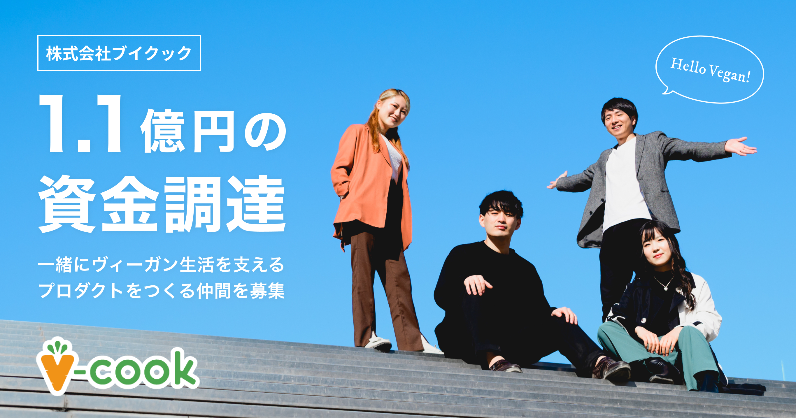ヴィーガン商品専門EC「ブイクックスーパー」などを運営する株式会社ブイクック(本社:神戸市中央区、代表取締役:工藤柊)は、アレンマイナー氏、ひょうご神戸スタートアップファンド、talikiファンドから、および日本政策金融公庫から総額1.1億円を調達しました。今回の資金を元に、”Hello Vegan!”な社会を実現させるためのプロダクト開発・PB商品開発・ヴィーガン初心者支援を行います。