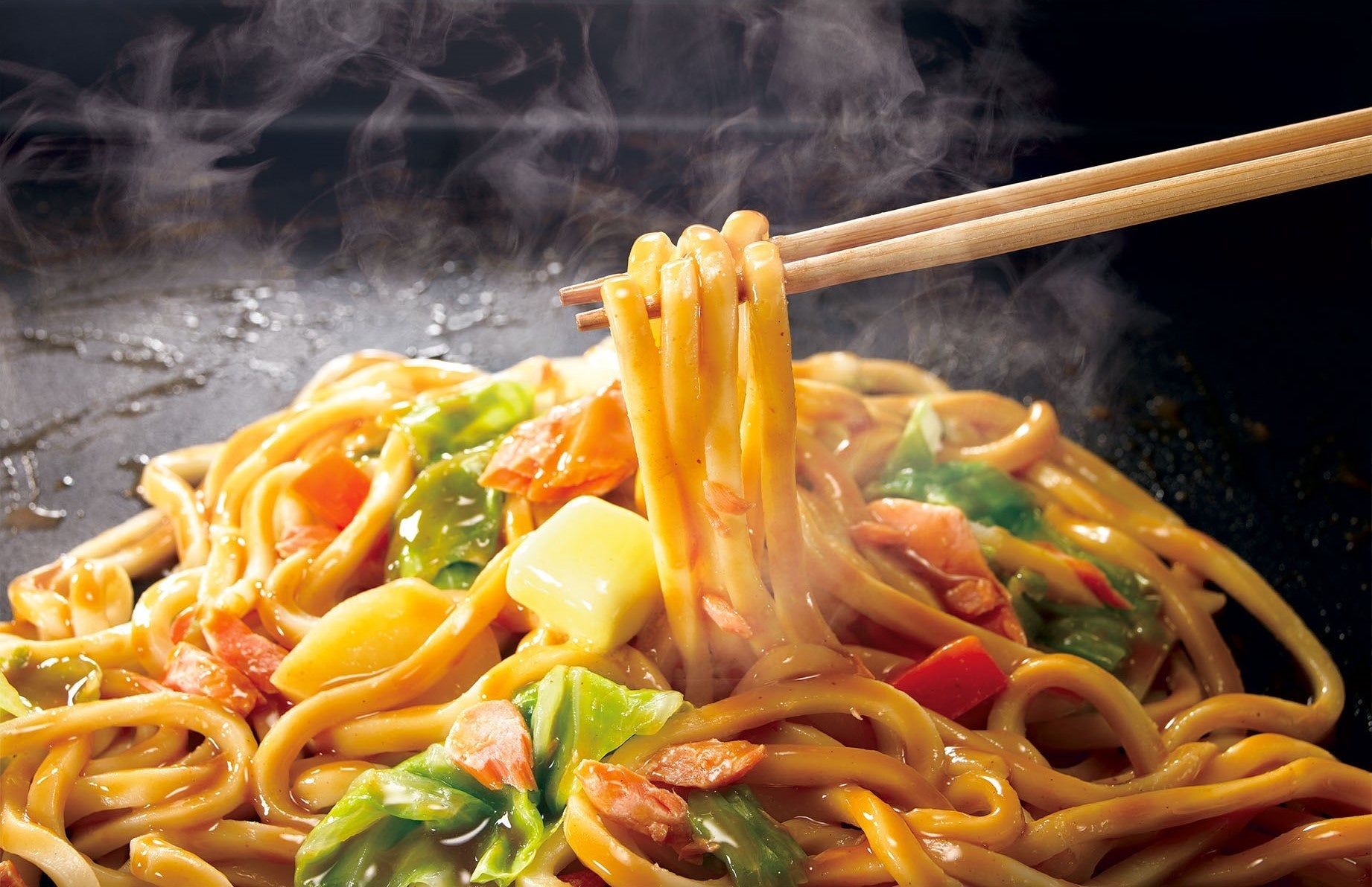残った具材にうどん1玉とバターを加えて作る「味噌バター焼うどん」が楽しめる、1度で2度おいしい設計です。