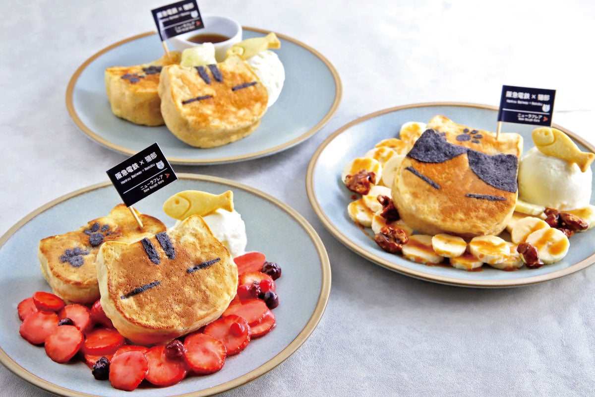 ずっと眺めていたくなるかわいさのにゃんにゃんパンケーキや阪急電車のボックスに入ったホットサンド、猫をイメージしたドリンクなど、この期間限定のメニューをご提供します。