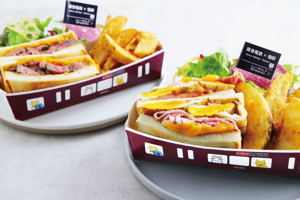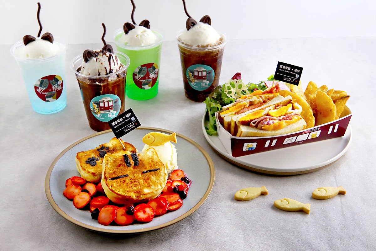 ずっと眺めていたくなるかわいさのにゃんにゃんパンケーキや阪急電車のボックスに入ったホットサンド、猫をイメージしたドリンクなど、この期間限定のメニューをご提供します。
