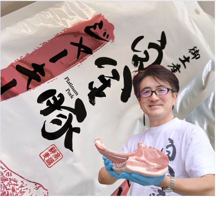「高源精麦の白金豚」といえば、言わずとしれたブランド豚。LWB という品種で一般養豚より 10〜20%長く時間をかけて育成することで、赤身の繊維が細かく脂身がクリーミーで風味豊かな味わいを楽しめる。餌には地域産の穀物も積極使用しており、資源循環の取組みも。