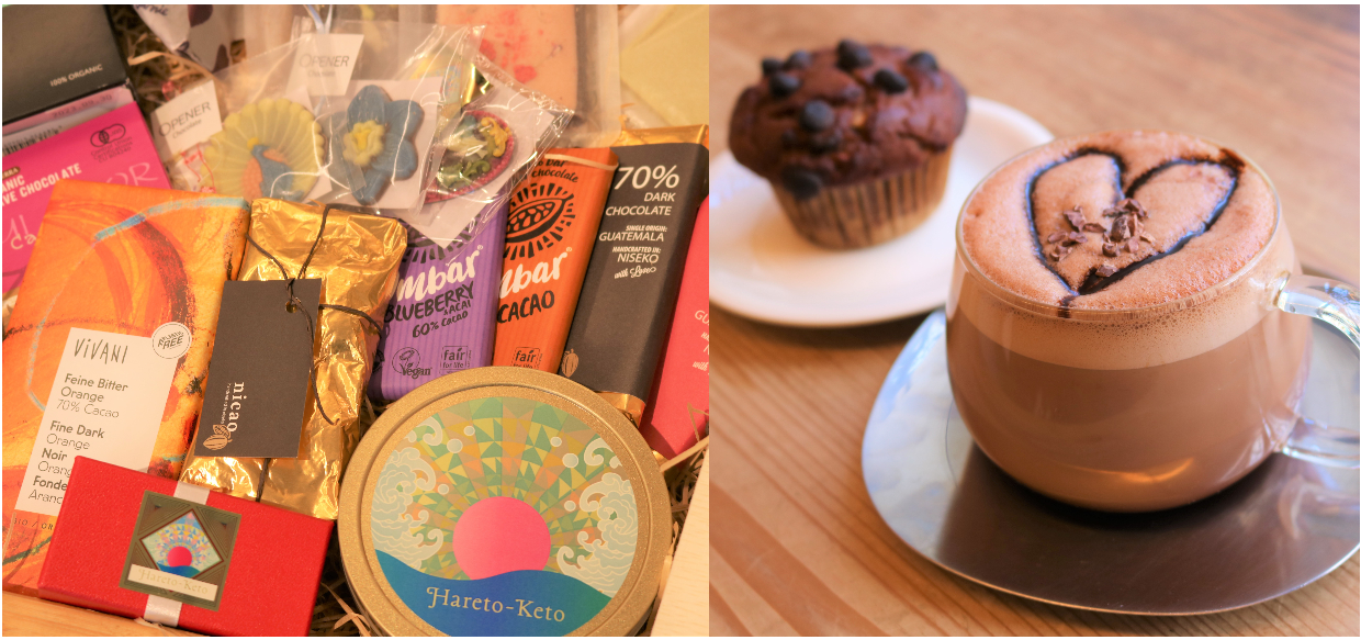 すべて手作業で作られ、作り手の想いがこもったクラフトチョコレートや華やかなロリポップチョコレートなど、当店厳選のプラントベース(植物性)&ナチュラルなチョコレートが集結します。ラインナップは約60種類と、通常営業時に比較して 「700%UP」 の品揃え。大人気のマフィンとホットチョコレートドリンクは、チョコレートの使用量を 「700%UP」!昨年、多くのお客様にご好評いただいたギフトセットもご用意しております。