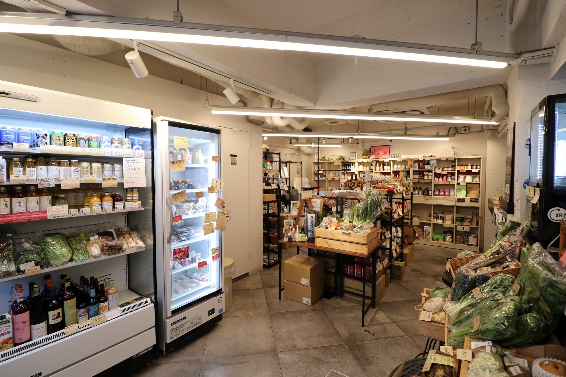 無農薬の国産野菜やプラントベースのグローサリー商品、国産ナチュラルな原料を使用したコンブチャ「_SHIP」、コールドプレスジュース、プラントベースメニューなどを取り揃えております。