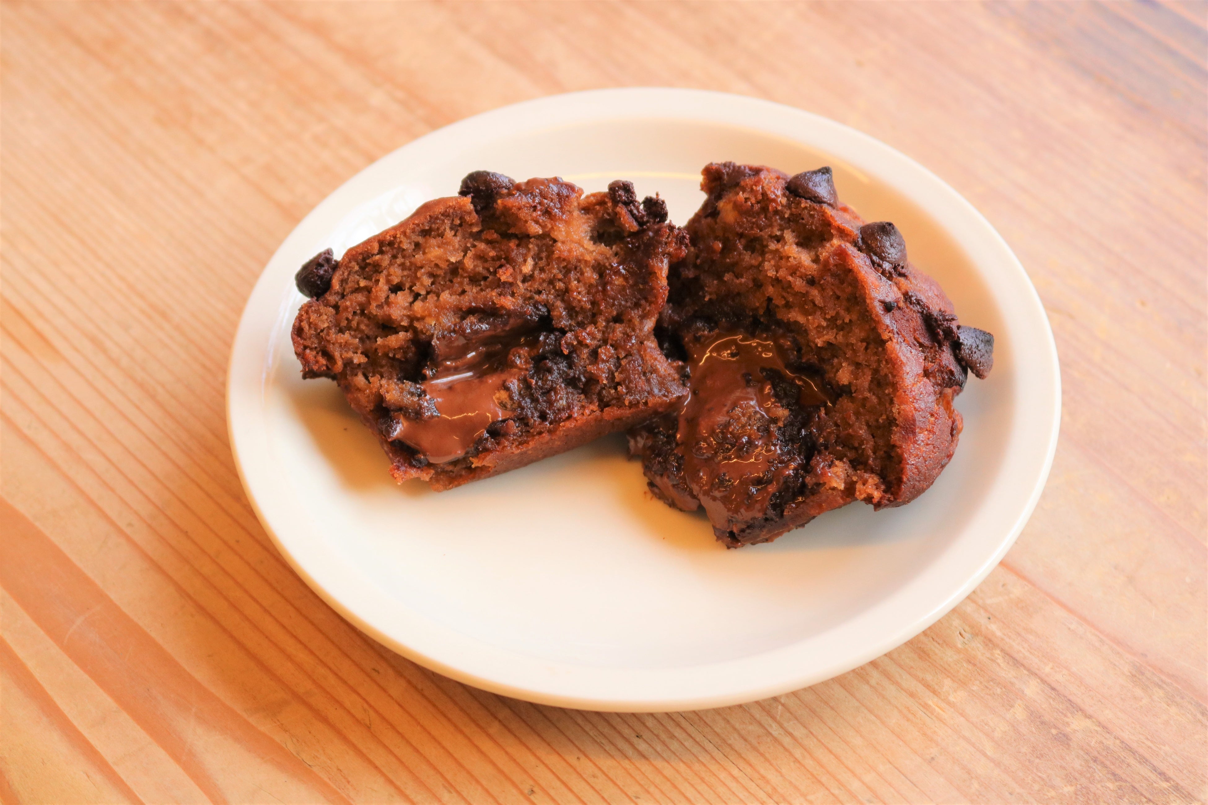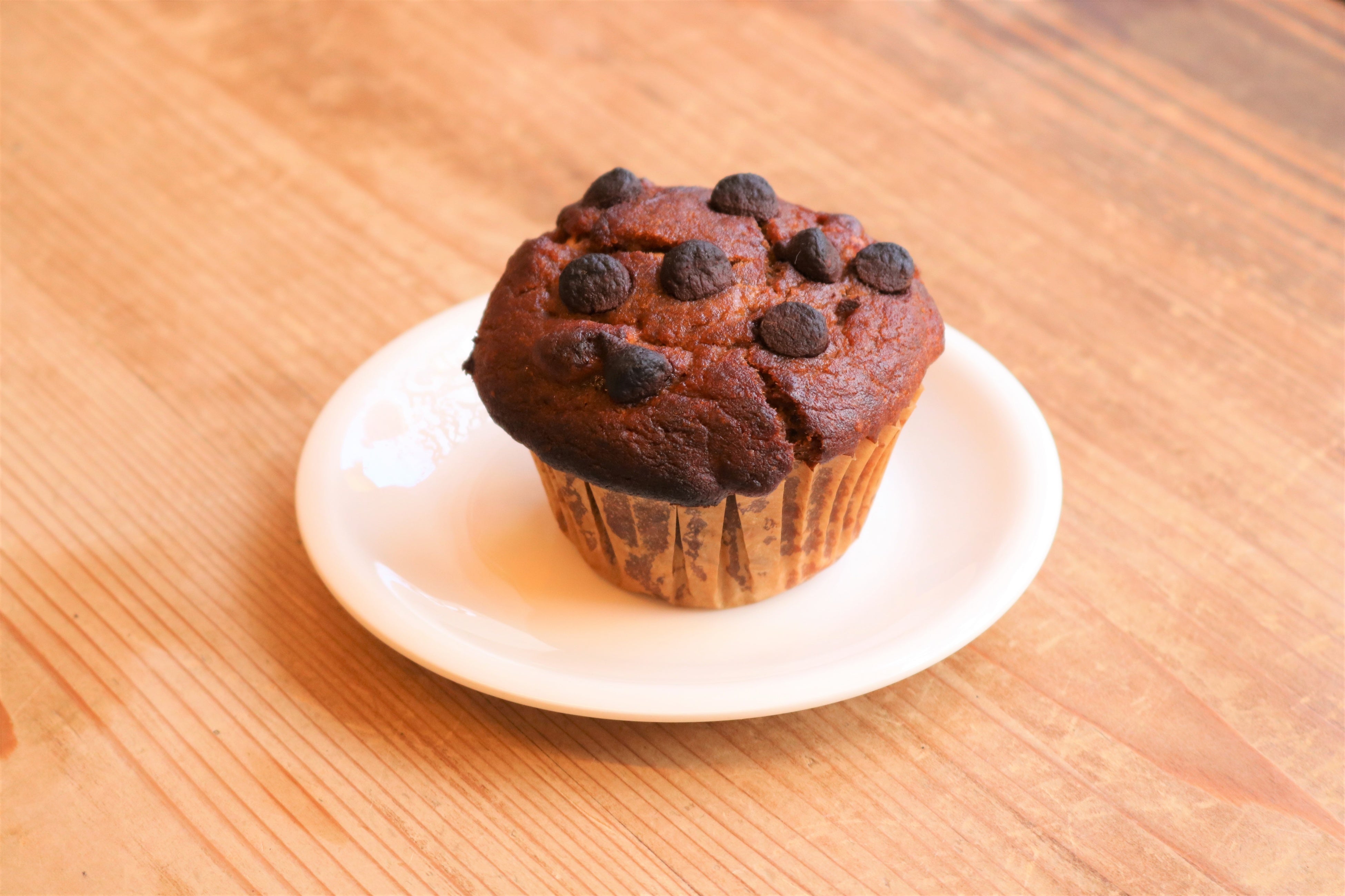 米粉ベース生地にバナナを練り込んだプラントベース&グルテンフリーの手作りマフィンです。たっぷりの有機チョコレートクリームを入れ込み、ダークチョコレートチップをふんだんにトッピング。温めてお召し上がりいただくと、中からとろっと流れ出る濃厚なチョコレートクリームをお楽しみいただけます。※イートイン、テイクアウトともに可能。