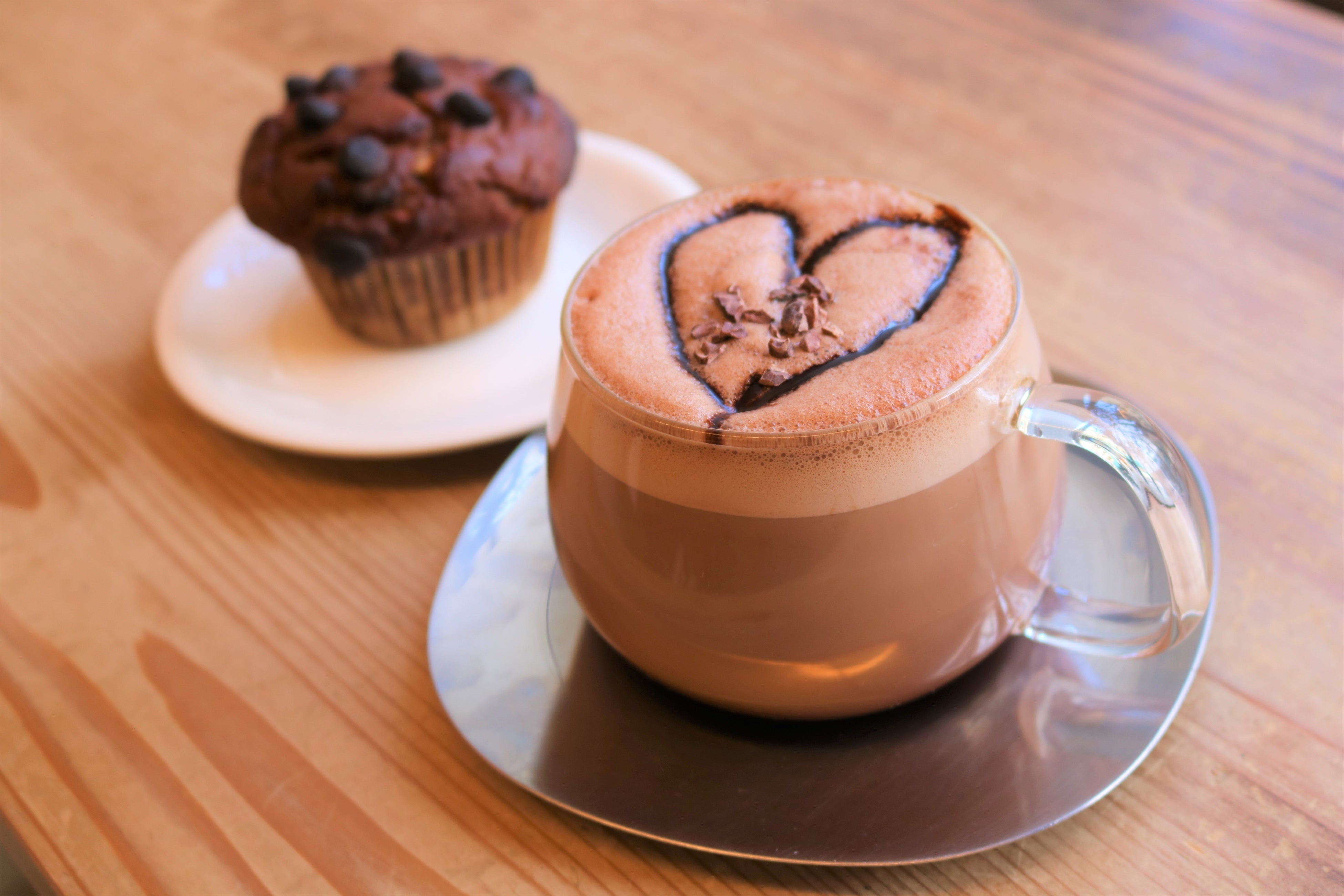 有機ココアパウダー使用のホットチョコレートドリンクです。濃厚な有機チョコレートソースをハート型にトッピングし、香ばしい香りのカカオニブを散りばめました。身も心も温まる一杯です。※イートイン、テイクアウトともに可能。
