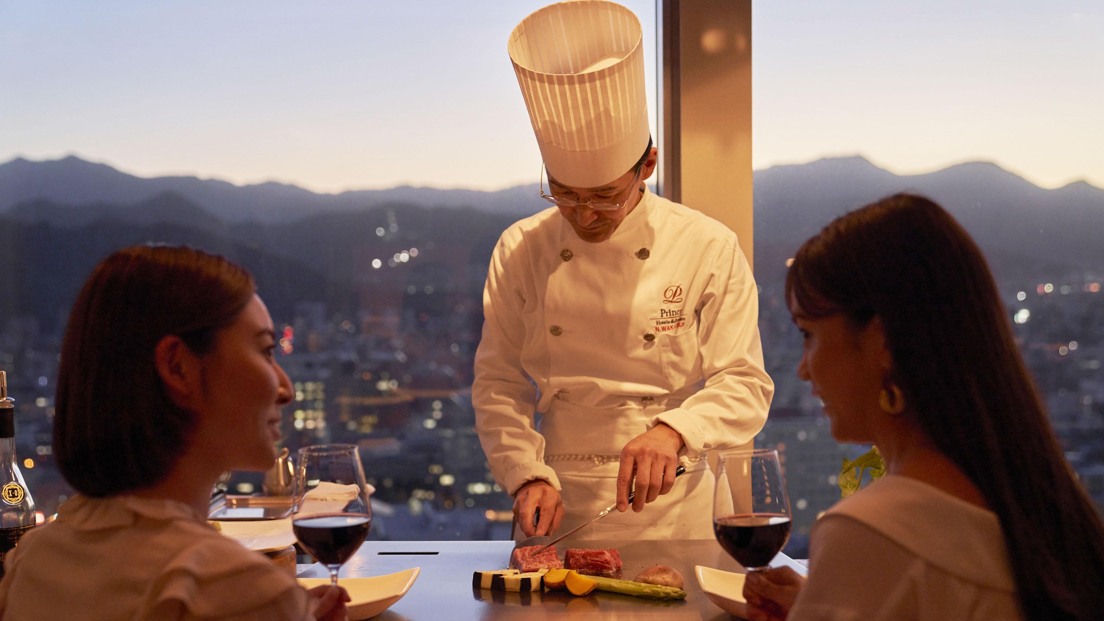 その他、ステーキハウス 桂(28F)では、シェフおすすめの活鮑、黒毛和牛(白老牛)などの厳選食材を味わう鉄板焼きディナーをご用意し、メインのお肉はロースとフィレの食べ比べでプチ贅沢を楽しんでいただけます。