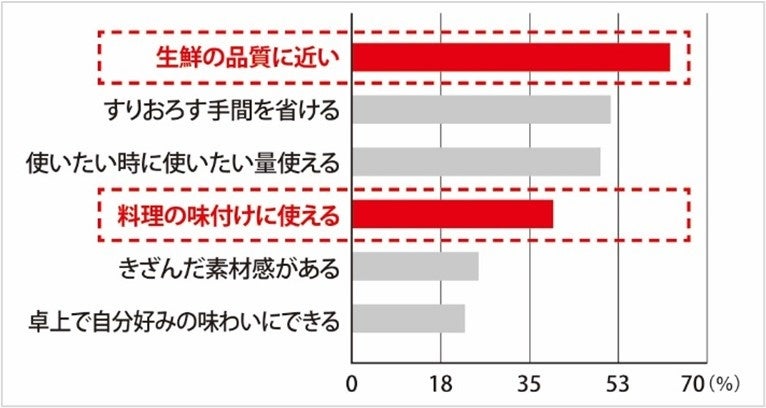 「きざみシリーズ」は、生鮮の代替としての価値や、手軽な味付け調味料としての価値に対する期待が高いことが分かります。