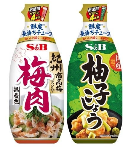 エスビー食品株式会社は、たっぷり使える大容量・お徳用タイプのチューブ入り香辛料シリーズから、料理の味付けに便利な「お徳用 梅肉」「お徳用 柚子こしょう」を新発売します。