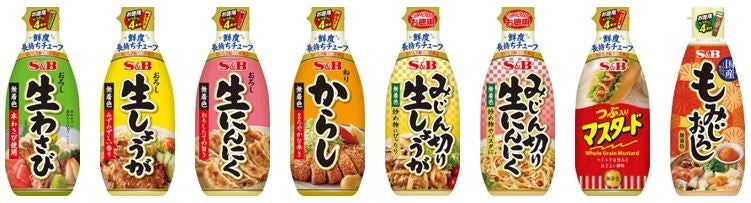 たっぷりお使いいただける大容量・お徳用タイプのチューブ入り香辛料シリーズです。持ちやすく安定感があるマヨネーズボトル形態で、片手で開けやすいワンタッチキャップを採用しています。また、無着色にもこだわっています。2023年1月現在8品をラインアップ。