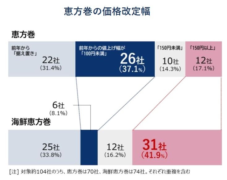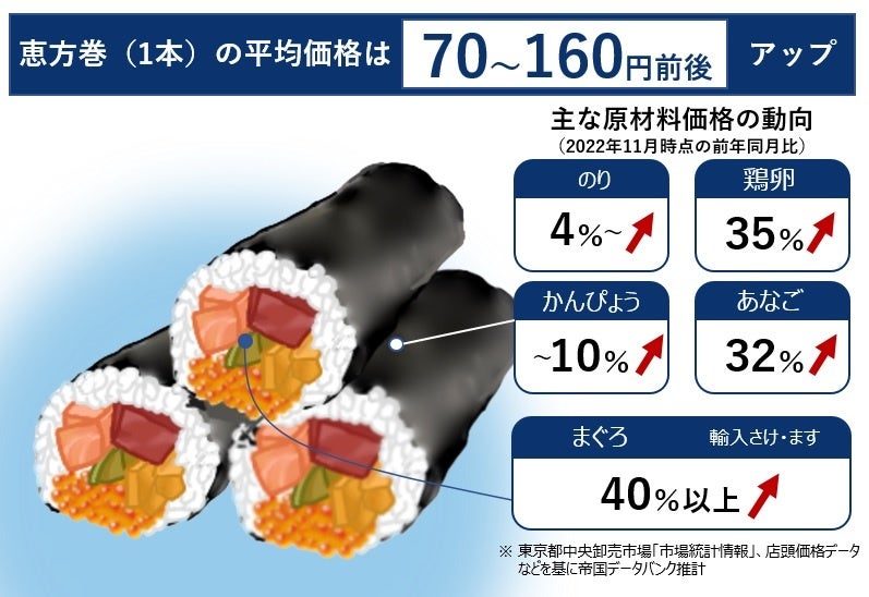 帝国データバンクは、2023年節分シーズンの「恵方巻」価格について、調査分析を行った。