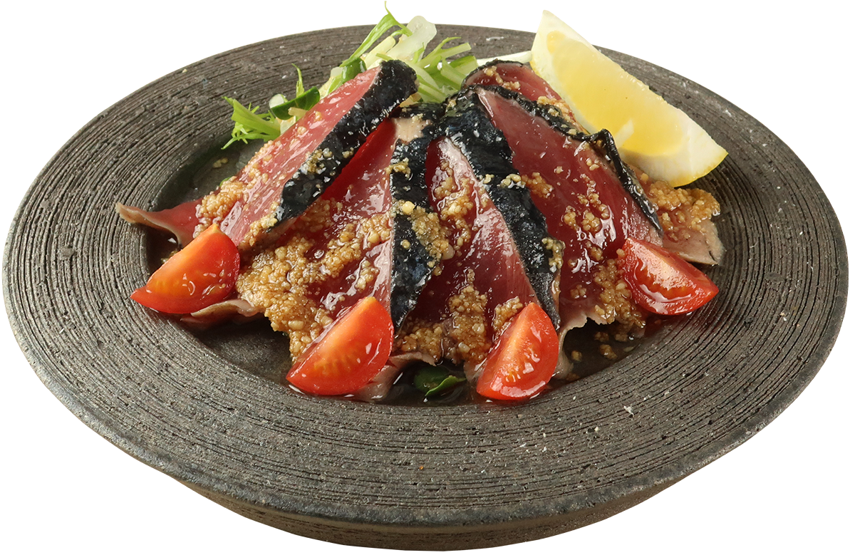 フェアの目玉は、一本釣りした鰹を、藁で香ばしく焼きあげた“藁焼き鰹”です。刺身で楽しむ「藁焼き鰹入り刺身4点盛り」をはじめ、いぶりがっことクリームチーズの食感がアクセントになり、お酒がすすむこと間違いなしの「藁焼き鰹にぎり いぶりがっことクリームチーズのせ」、店内仕込みのこだわりのソースで仕立てた「藁焼き鰹のカルパッチョ」をお楽しみいただけます。さらに、「炎の藁焼き鰹にぎり」は藁の香りをより感じていただきたく、お客さまの目の前で、藁で焼きながらご提供いたします。杉玉ならでの遊び心があり、フォトジェニックかつインパクトのある商品をご用意しました。