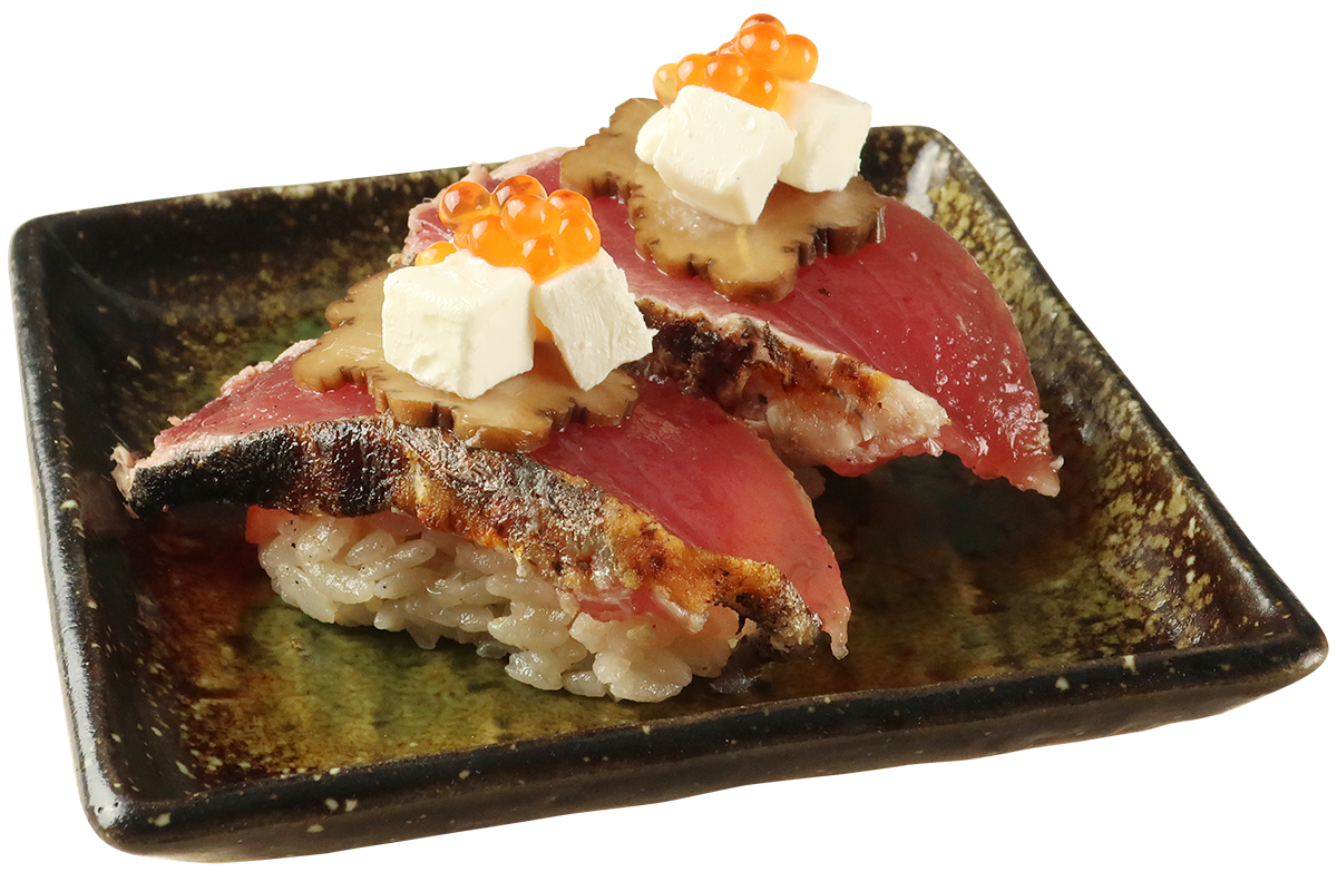 ■商品名:藁焼き鰹にぎり いぶりがっことクリームチーズのせ