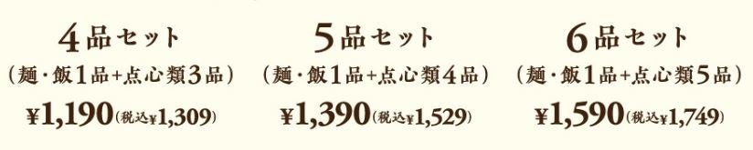 麺・飯(1品)+点心類(3~5品)を選べるセットメニュー