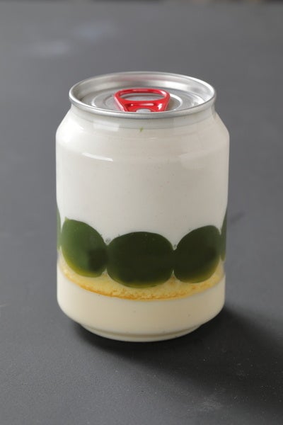 家康が好んだというきな粉を生クリームに配合。ボトルいっぱいの生クリームにはきな粉が入り、甘さ控えめで香ばしさが口中に広がる。もっちりした抹茶ゼリー、あんこ、スポンジケーキとの一体感が楽しめる。