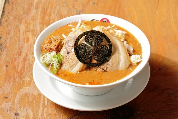 豚骨スープと八丁味噌を組み合わせた、煮込みスタイルが新鮮。トッピングには家康が好んだ鶏肉と健康志向の強かった家康にあやかり豆腐を使用。注文後に揚げた揚げ豆腐はまろやかなスープに浸して楽しめる。味噌煮込みうどんを彷彿とさせる見た目だが、絶妙なバランスの1杯は味噌豚骨煮込みラーメンという新感覚のラーメンに。