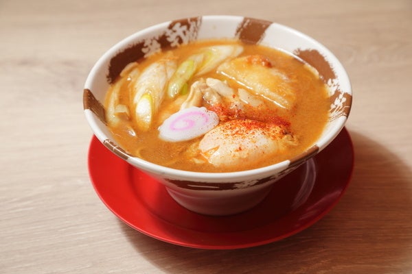 丸鶏とゴボウでとっただしに、赤みそと信州みそを合わせたみそスープは、まろやかな味わい。炒めたタマネギで自然な甘さとうま味をプラスした。今回のメニュー用に太麺を特別に用意。表面がざらっとしていて、芳醇なスープによく絡む無化調ならではの滋味深い味わいは必食だ。