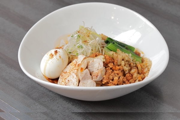 ゴマやナッツ類を配合した自家製オリジナルのチーマージャンに八丁みそをブレンド。名古屋名物、きしめんのような平打ち麺とよく和え、濃厚さを堪能する満足感の高い一杯。トッピングのモモ肉とムネ肉のチャーシュー、煮卵は、岡崎の地鶏・岡崎おうはんを使用する。