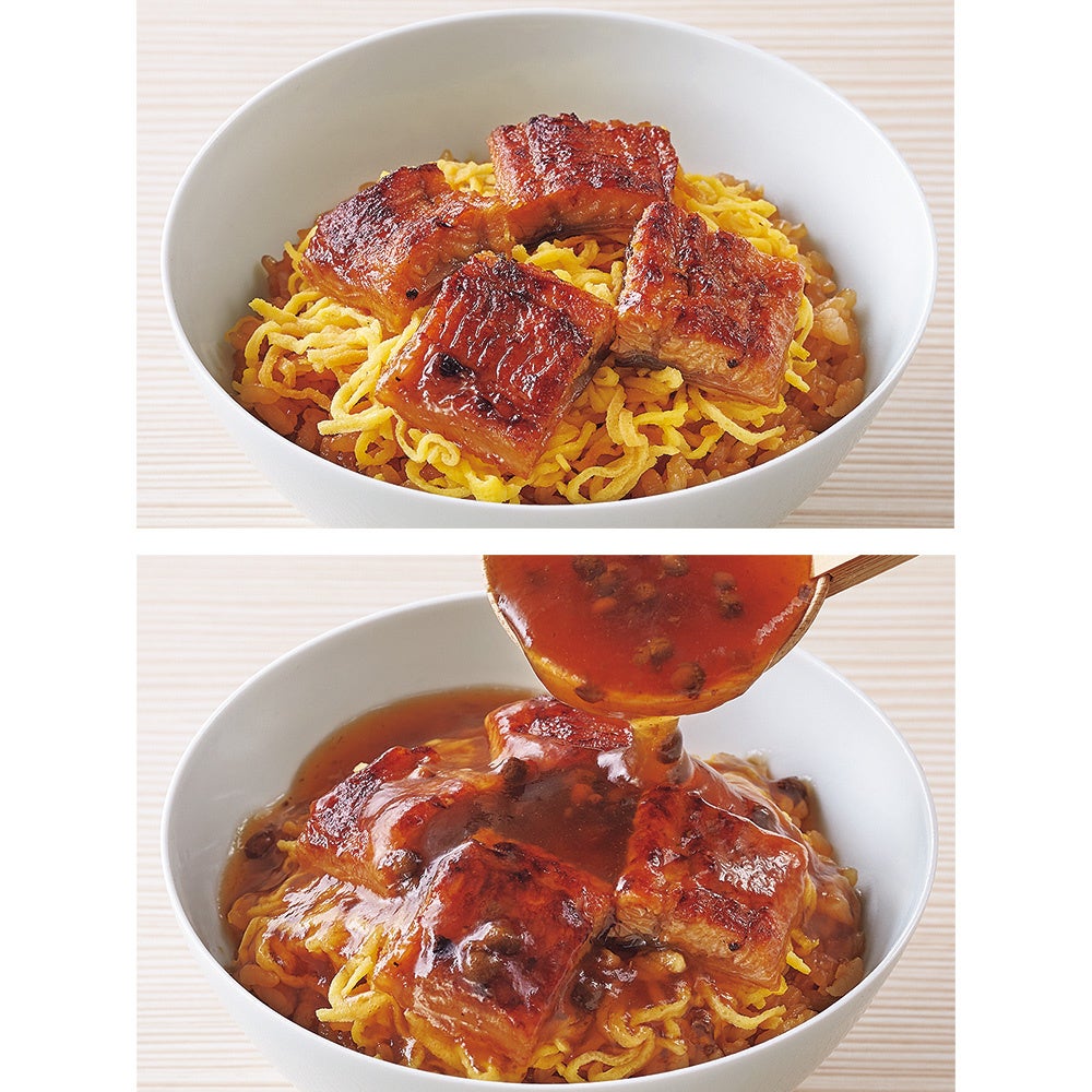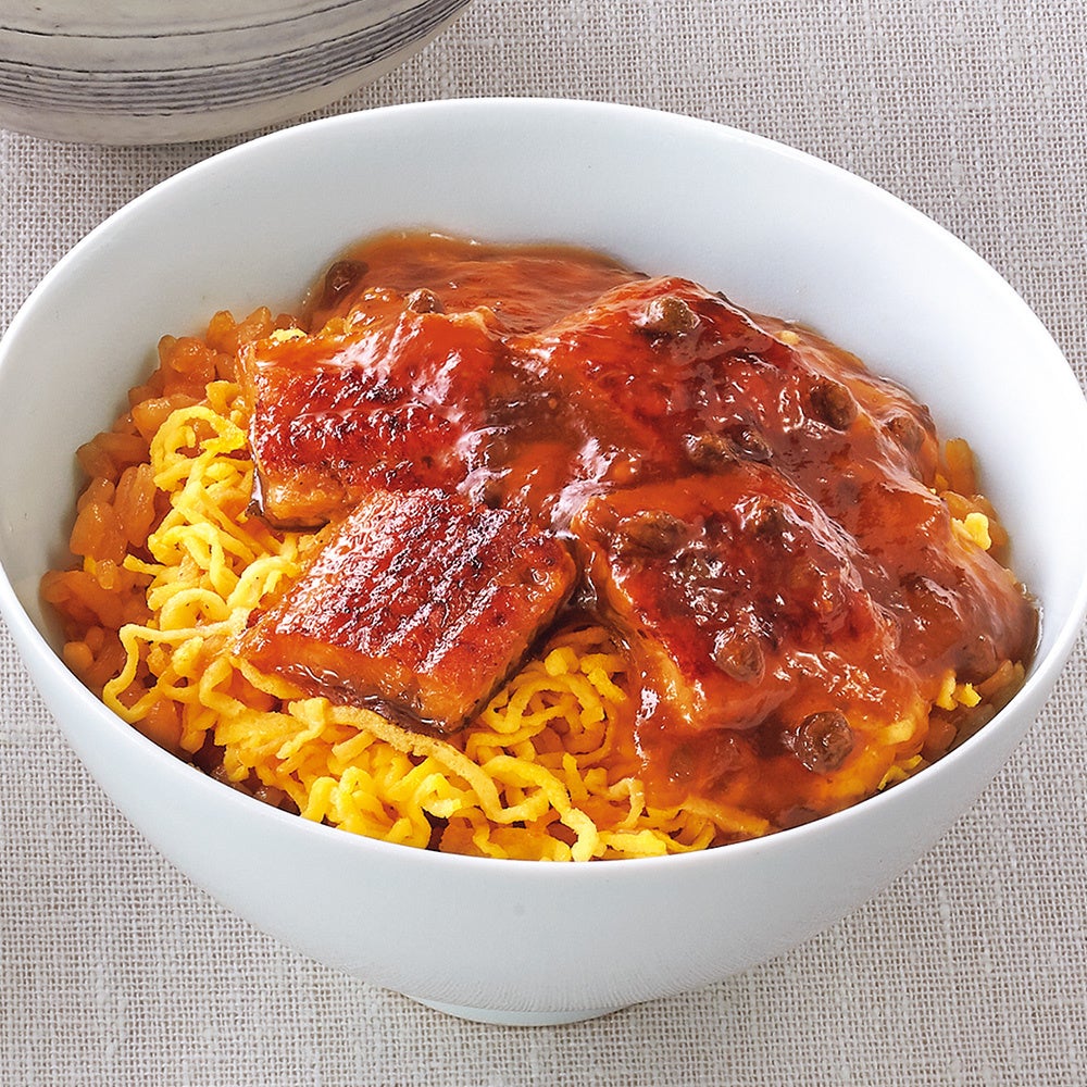 蒲焼のたれの味わいが広がるご飯に色鮮やかな錦糸卵をたっぷりしき、国産の鰻を載せました。鰻はふわっとした柔らかい身の食感を大切にしつつ、香ばしく焼き上げました。合わせたのは、風味豊かな実山椒を使用したピリ辛の餡。穴子の天ぷらや天丼、揚げなすとも好相性です。