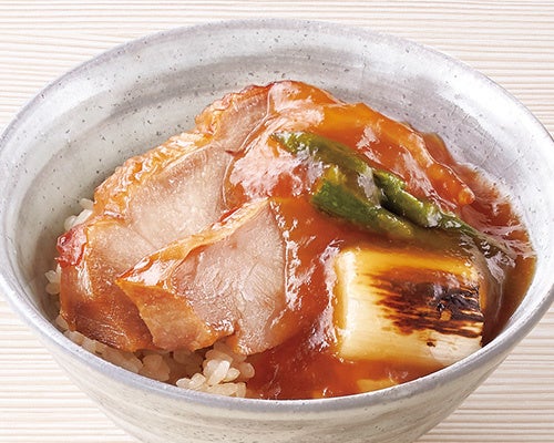 牛蒡の香り豊かな混ぜご飯に、和風たれで香ばしく焼いた国産鶏もも肉と炙った白葱、グリーンアスパラガスを添えています。餡には和風出汁をきかせ、みりん、醤油、砂糖でコクの深い味に仕上げました。餡を湯がいたキャベツやインゲンにかけると、洒落たお浸しが楽しめます。