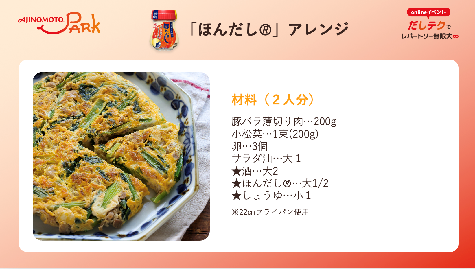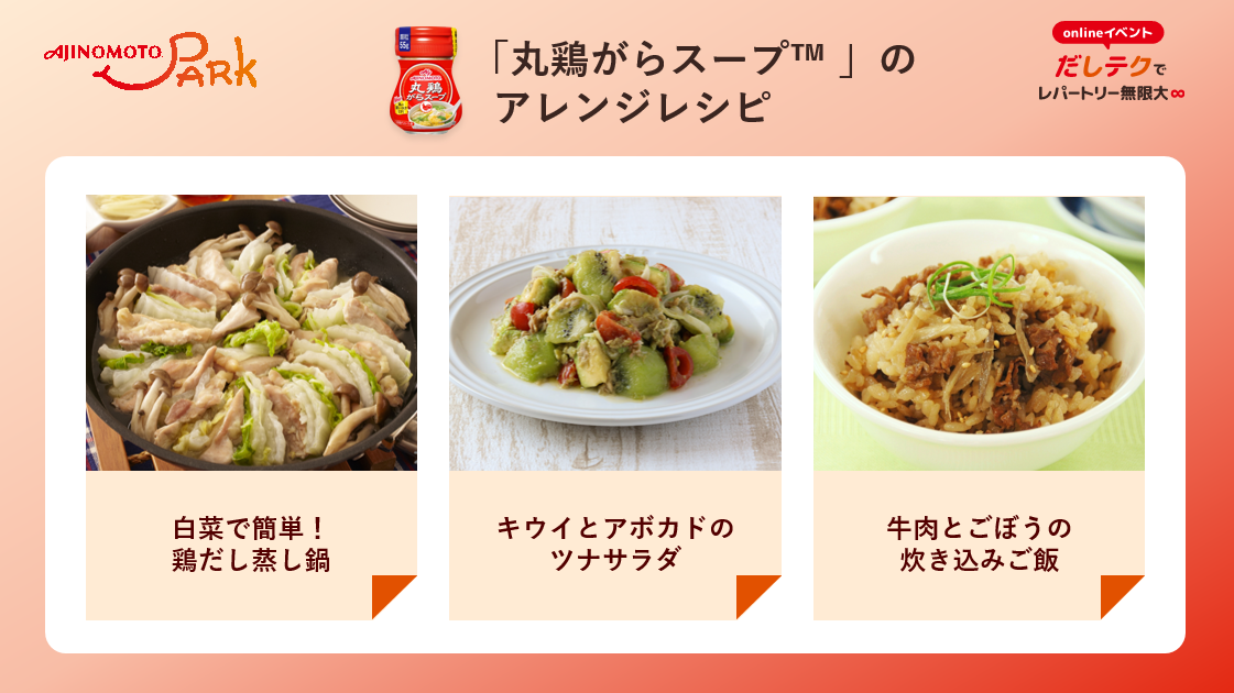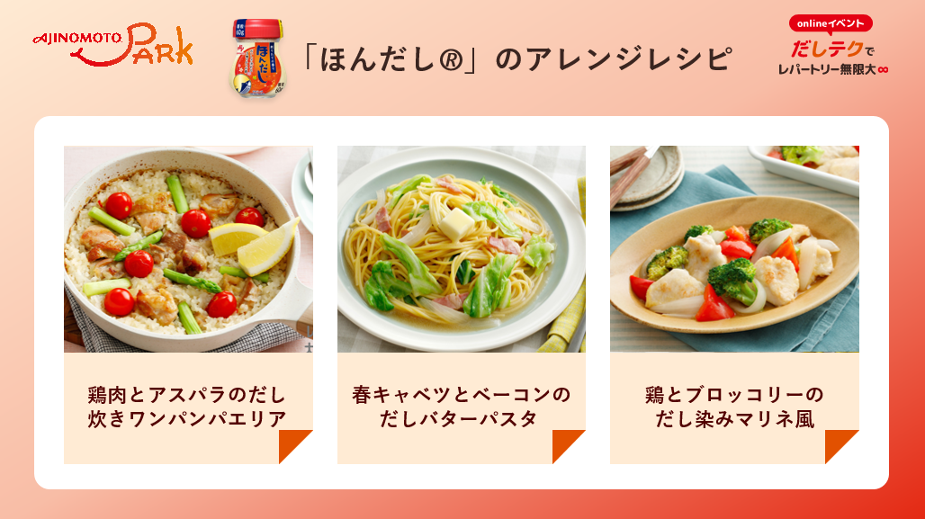 イベントでご紹介した「ほんだし®」のアレンジレシピは、以下の3つです。