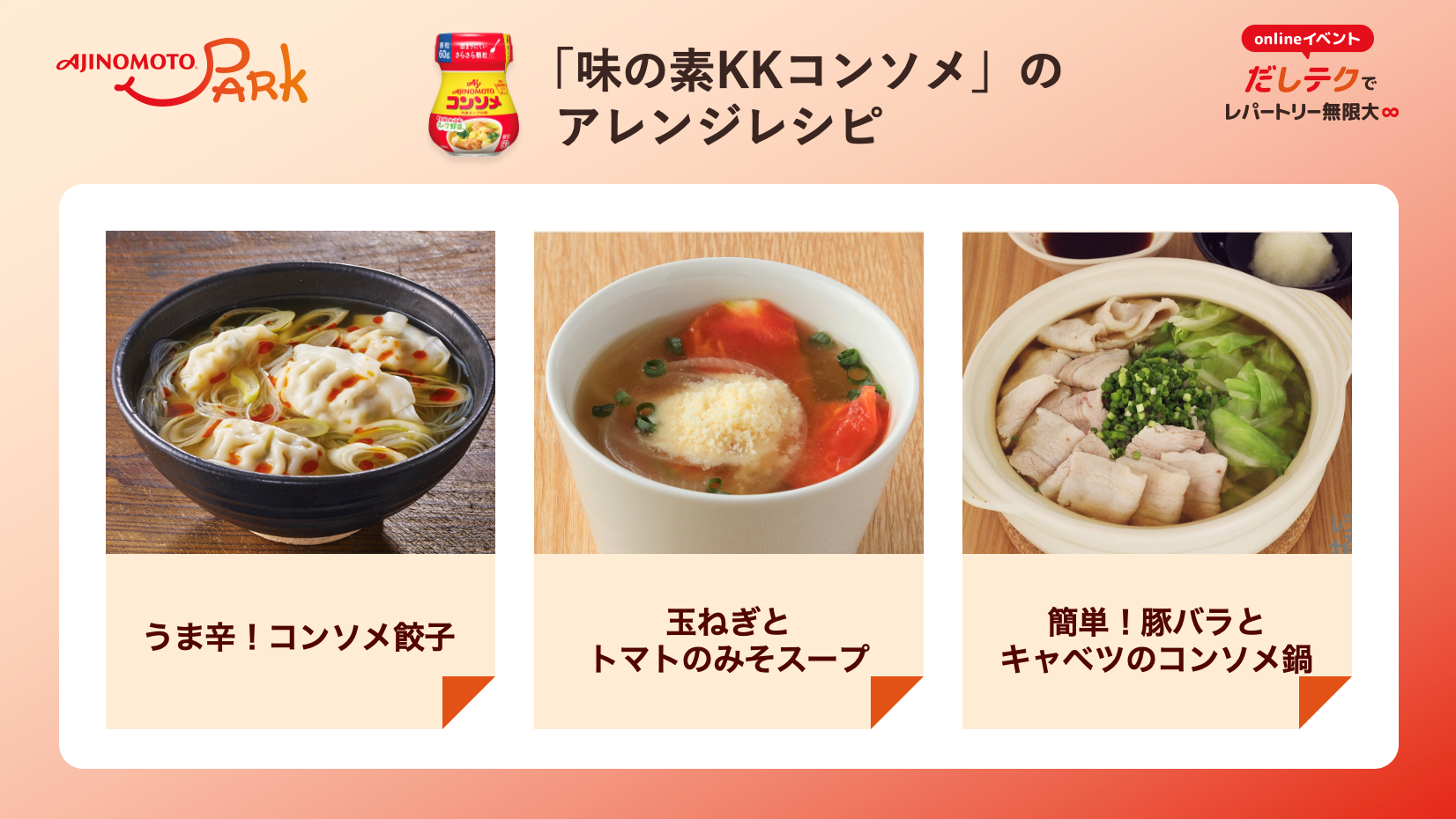 イベントでご紹介した「味の素KKコンソメ」のアレンジレシピは、以下の3つです。